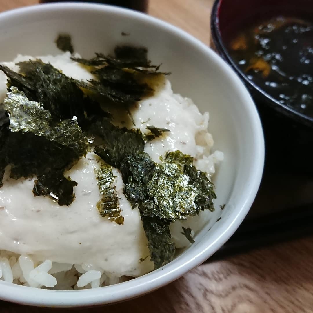 すった自然薯を、そのままご飯にのせて